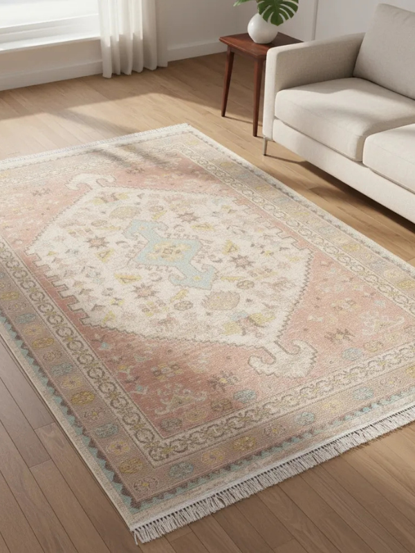 Fabricada en algodón reciclado y polipropileno, es una alfombra liviana, flexible y resistente a las manchas, ideal para espacios de uso cotidiano como living, comedor o dormitorio.
