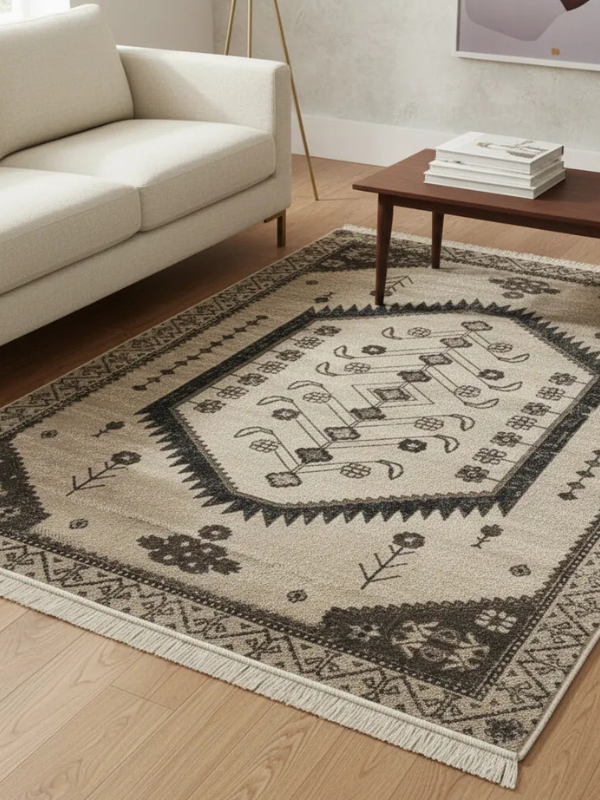 Fabricada en algodón reciclado y polipropileno, es una alfombra liviana, flexible y resistente a las manchas, ideal para espacios de uso cotidiano como living, comedor o dormitorio.